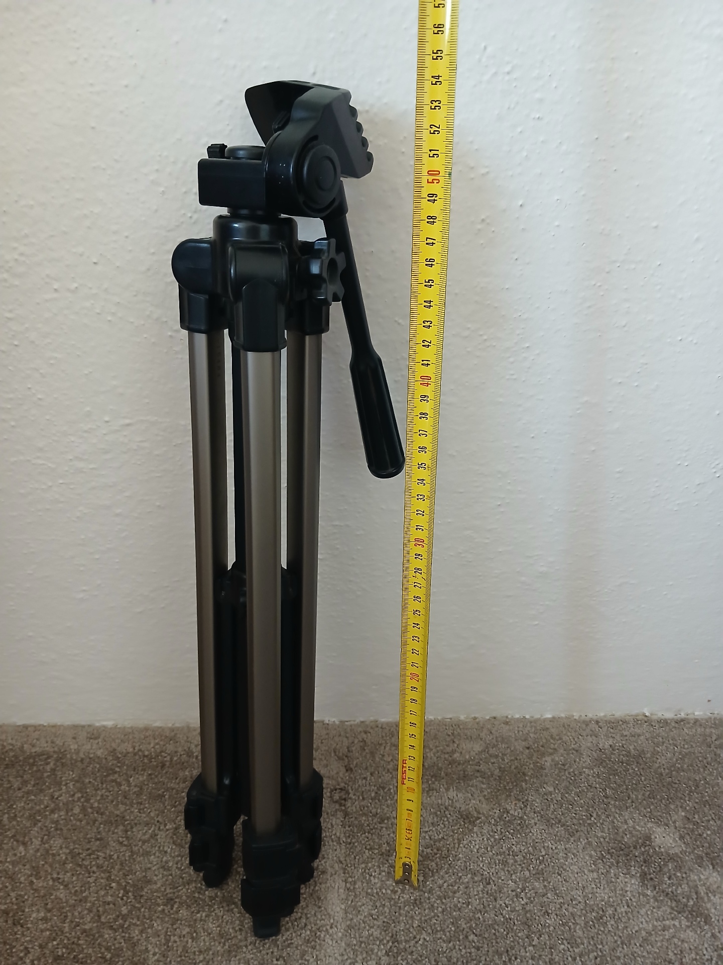 Stativ jsou vyrobeny z odlehčeného hliníku titanové barvy v kombinaci s plastovými komponenty, má třídílné nohy zakončené gumovými patami.