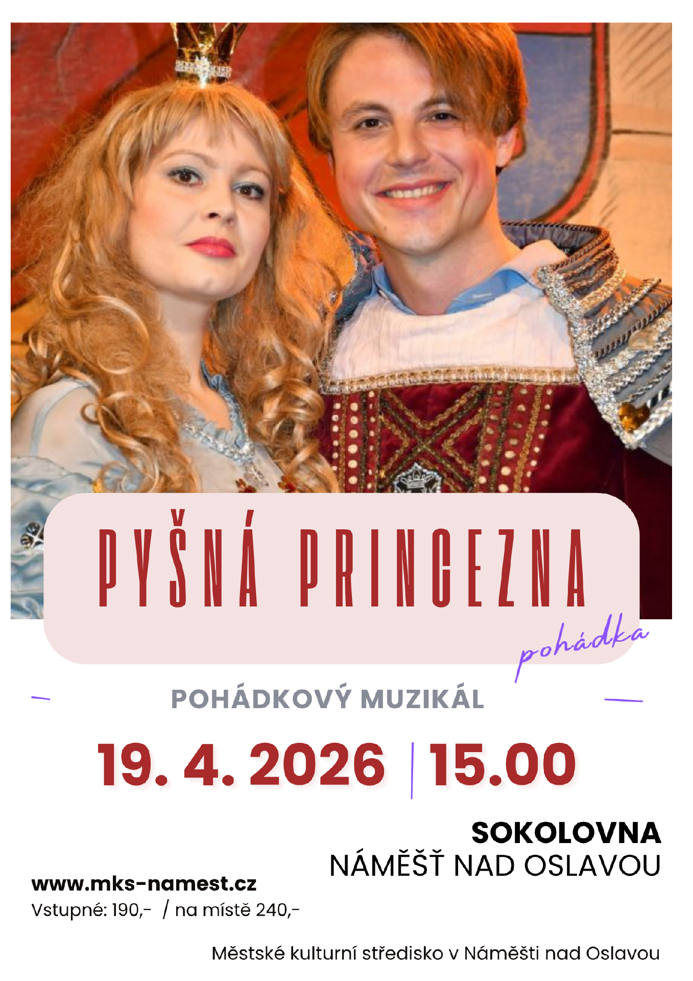 Pyšná princezna Sokolovna Náměšť nad Oslavou, Náměšť nad Oslavou Pohádkový muzikál pro děti. délka představení : cca 65 minut pro děti od 3 let