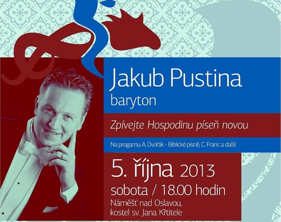 Sobota 5. října přinese recitál operního pěvce Jakuba Pustiny s názvem Zpívejte Hospodinu píseň novou. Na programu jsou Biblické písně od Antonína Dvořáka a další. Začíná se v 18:00 v kostele sv. Jana Křtitele v Náměšti nad Oslavou.